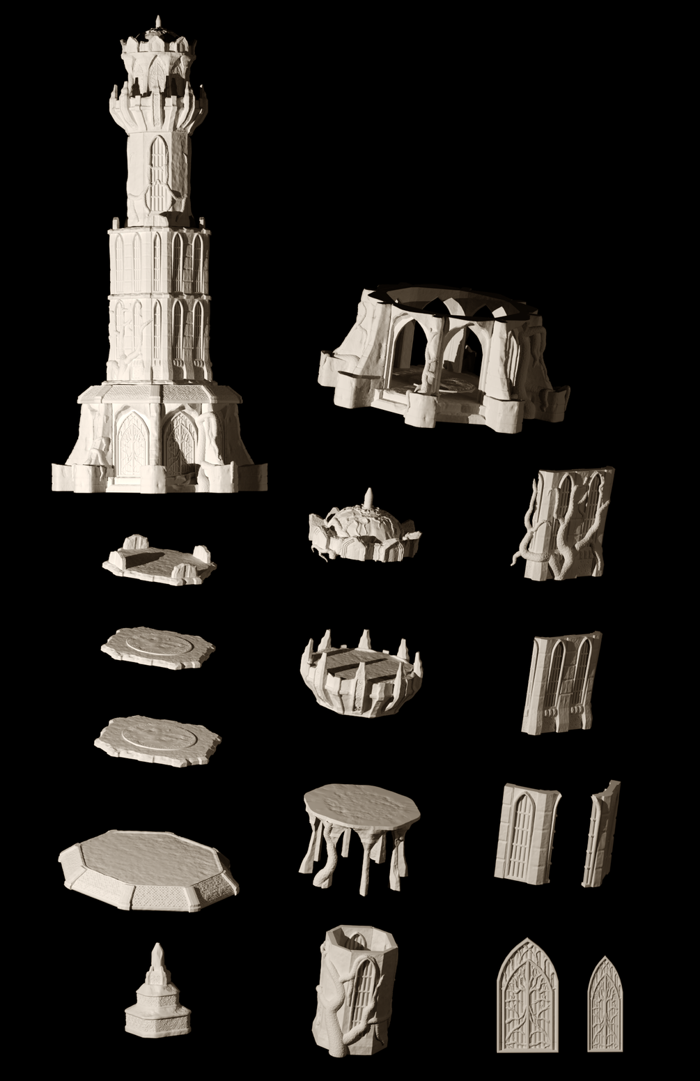The Abandoned tower that hides the secrets of ancient magic awaits your adventures. Consists of 16 models. It is modular, assembled from various elements, you can change the number of storeys (height), put walls with or without roots. It also has rooms that can be disassembled to act out some scenes in them.